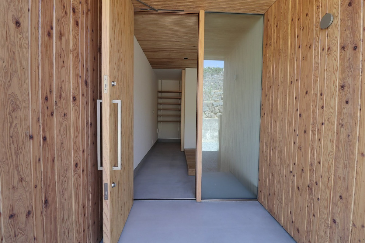 杉の質感を活かした、自然素材の玄関